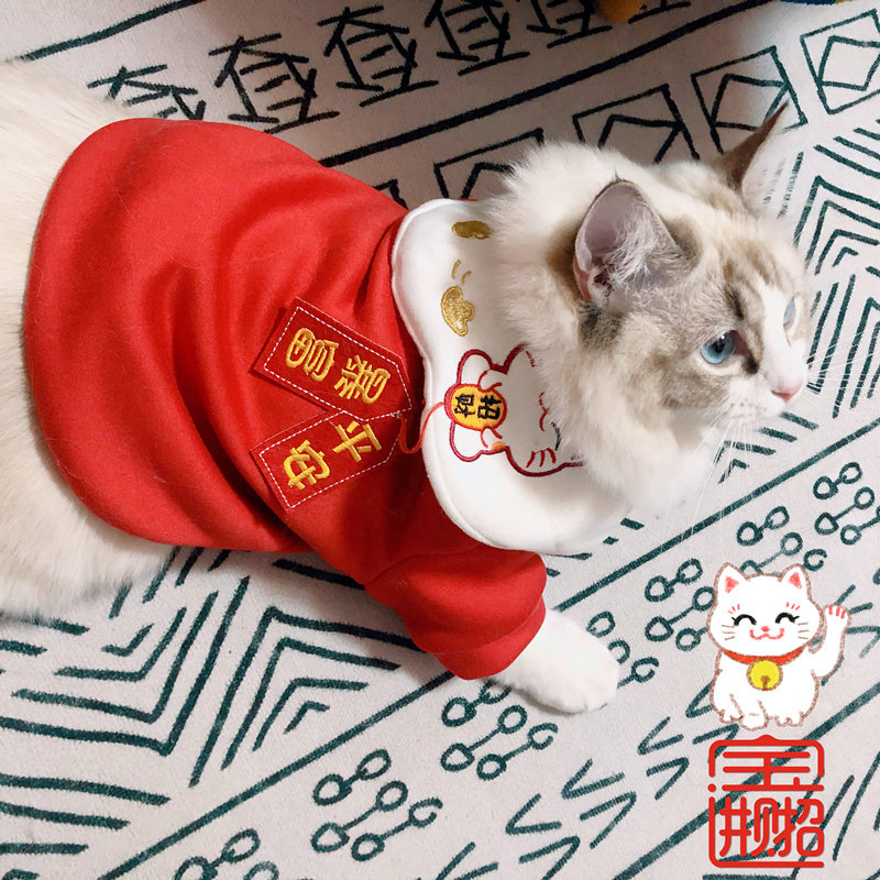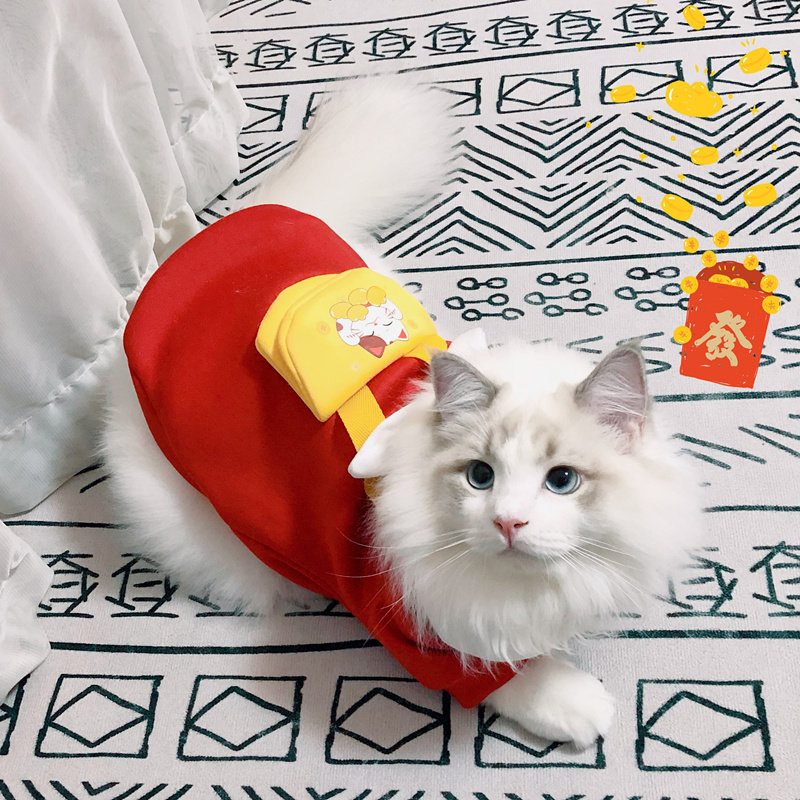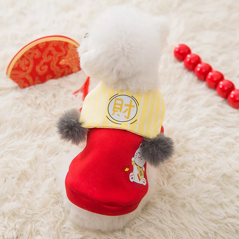 Cute cat and dog New Year Spring Festival clothes pet festive two-legged clothes autumn and winter warm Teddy small dog cat universal