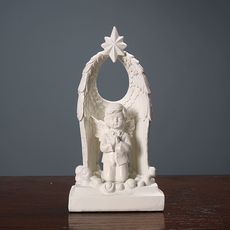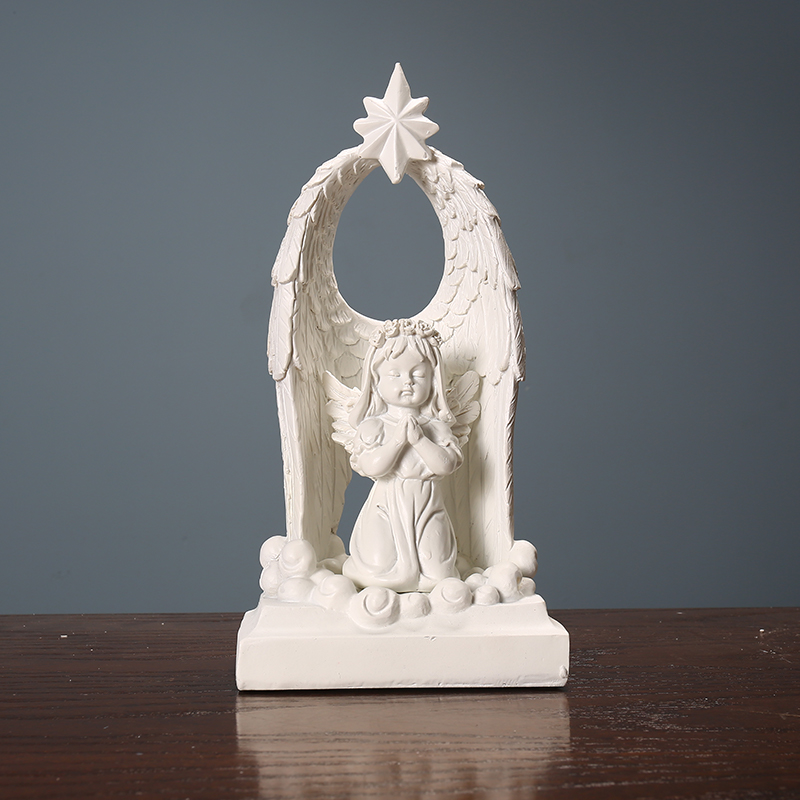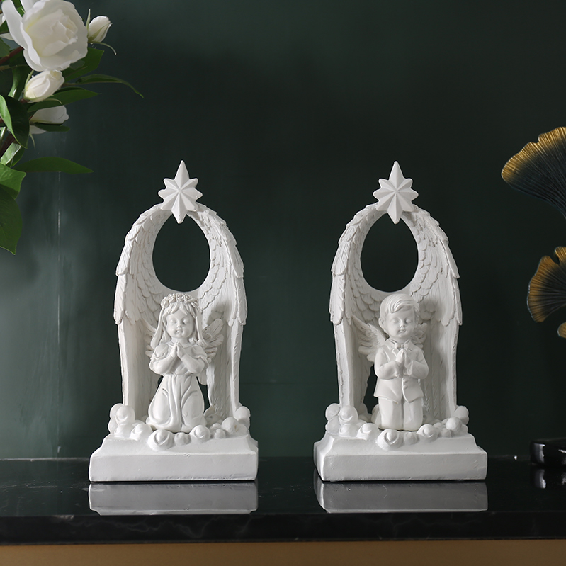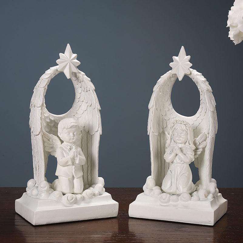 Blessing Prayer Angel Swing Piece Eurostyle Retro White Resin Sculpture Adornment Figurines Table Small Furnishing