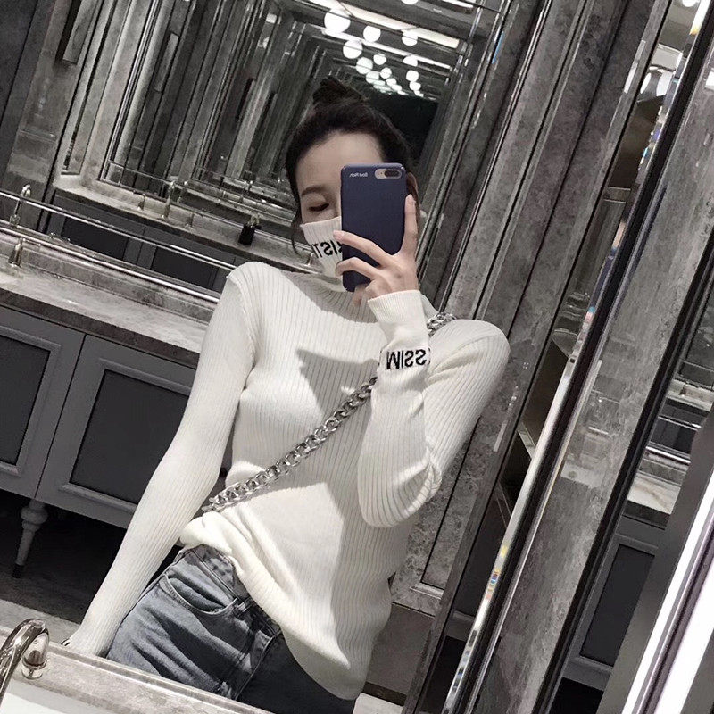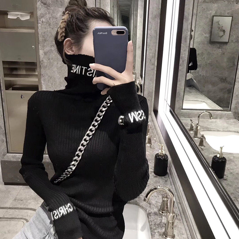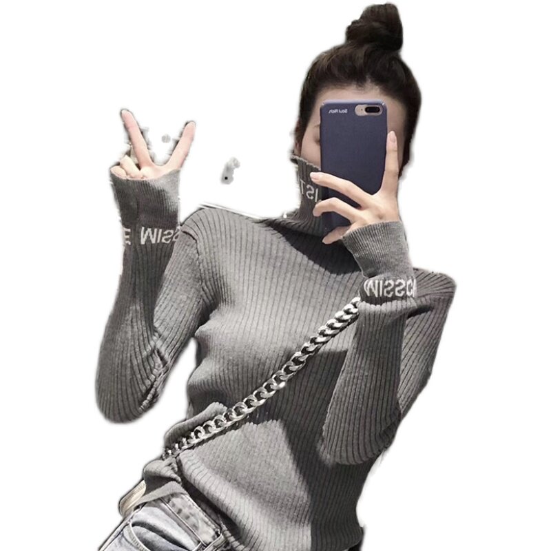 European station 2022 autumn new pullover outer wear inner high-necked knitted bottoming shirt tight-fitting woolen women's top