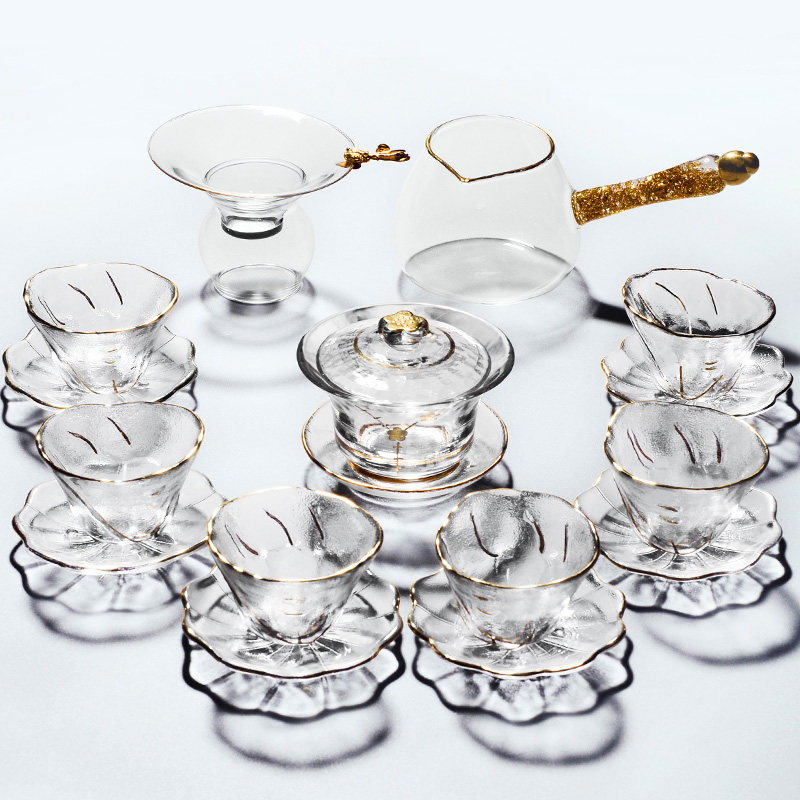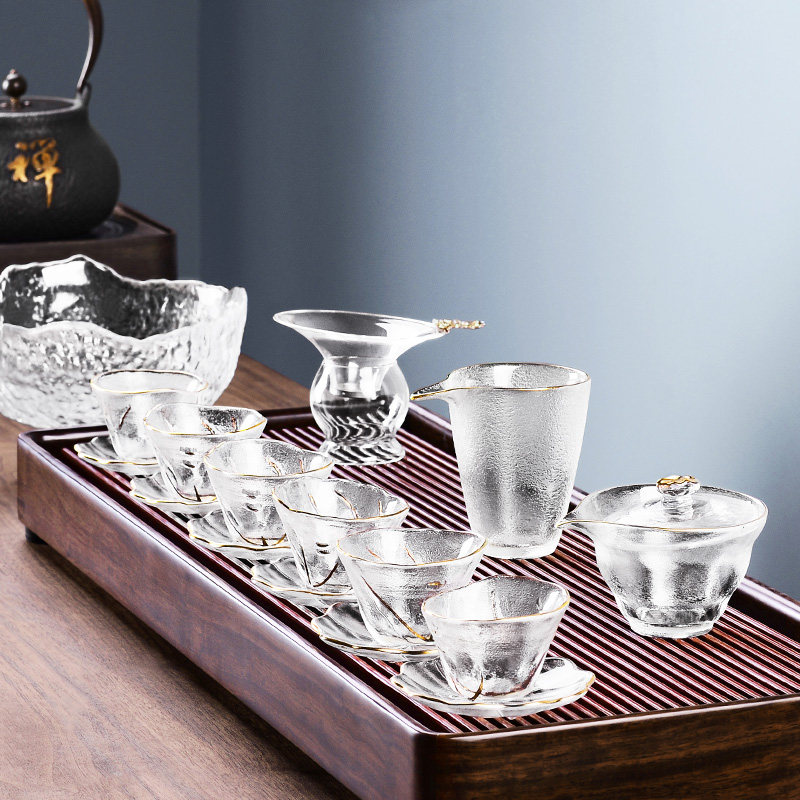 High end glass tea set Set of gongfu tea cup tea cup tea pot transparent tea maker Home Brief modern day style