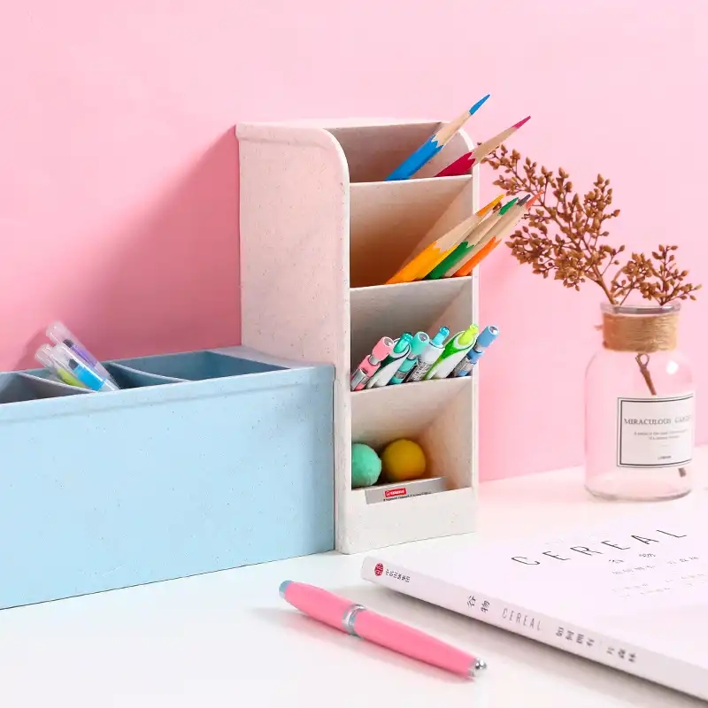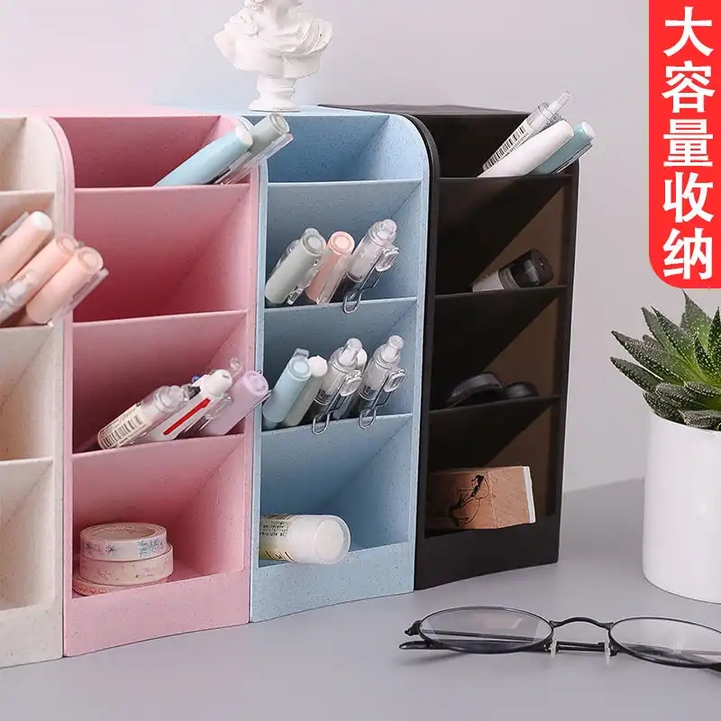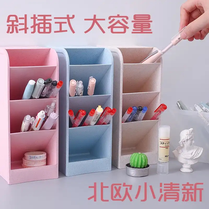 Pen holder oblique insert ins simple Nordic personality transparent stationery storage box widened five grid students creative fashion cute pen holder female small fresh color office multifunctional desktop pen bucket