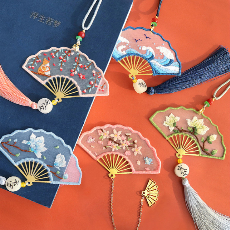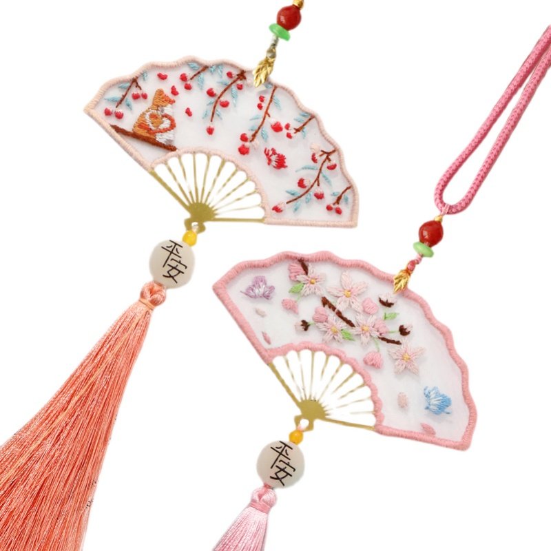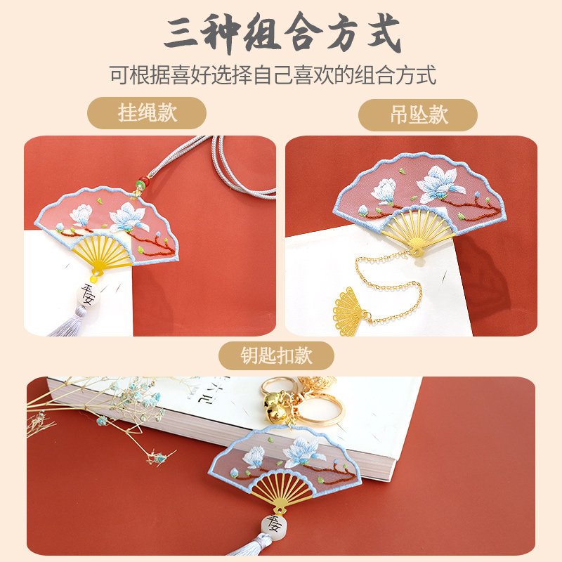 Embroidery DIY material package Handmade Su embroidery group fan Students use ancient style bookmark gifts to send girlfriends lanyard peace and happiness