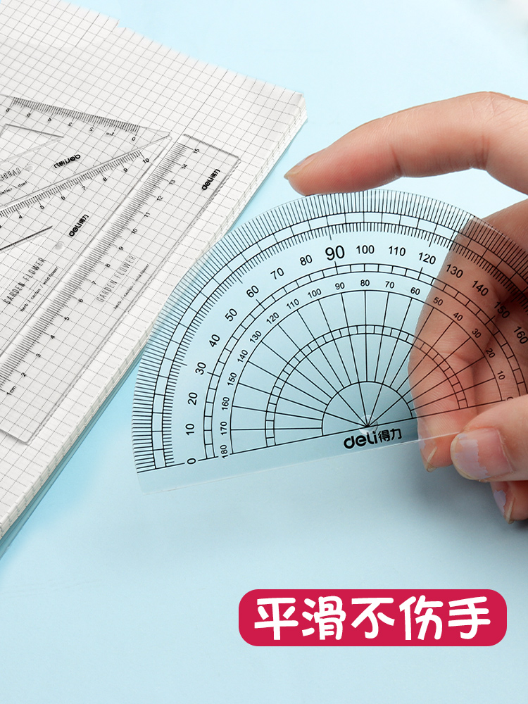 Powerful set of ruler four-piece set of primary school students straight ruler triangle ruler learning stationery Japan and South Korea cute simple ruler transparent measurement
