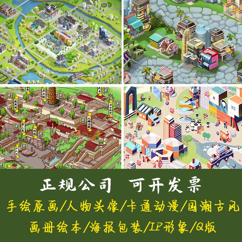 Hand-drawn illustration design custom painting national tide character avatar cartoon anime Q version map packaging poster picture book