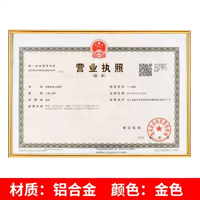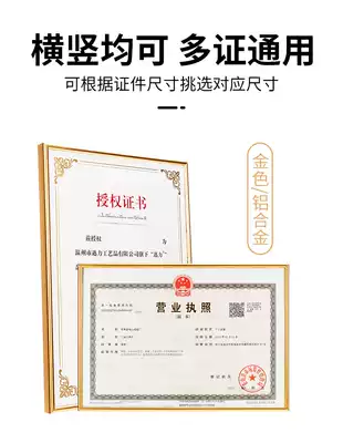 Aluminum alloy industrial and commercial business license frame A3 protective cover original wall-mounted table certificate Food business license photo frame