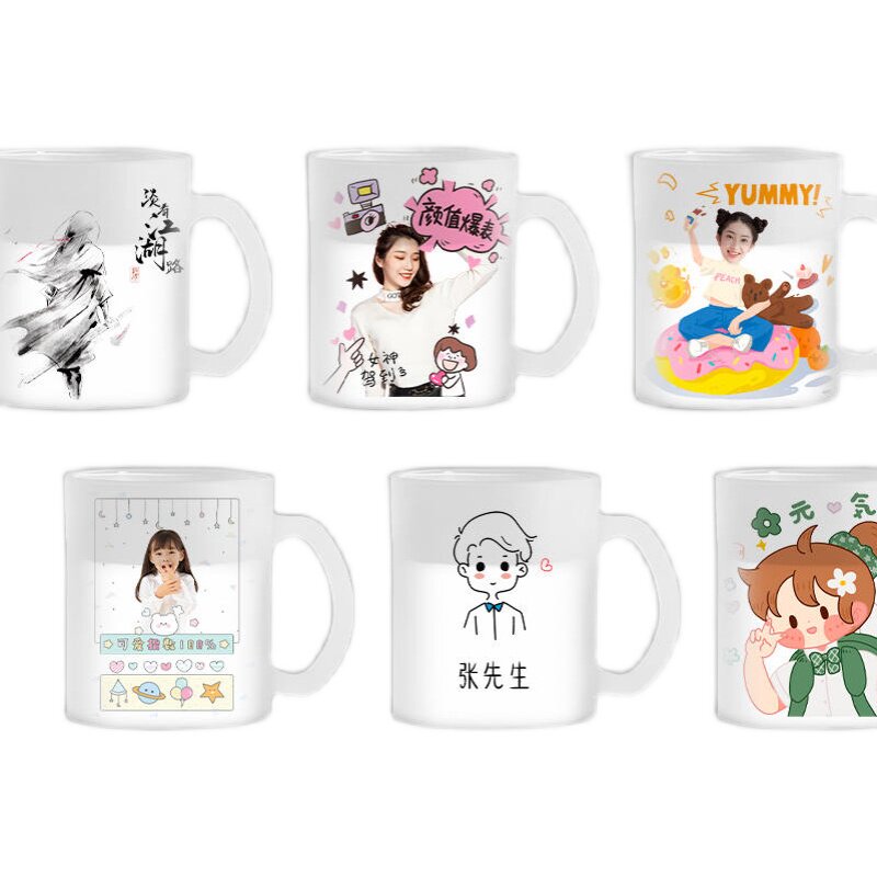 Customized frosted glass translucent Mark water cup can be printed photo ceramic female creative trend personality couple gift