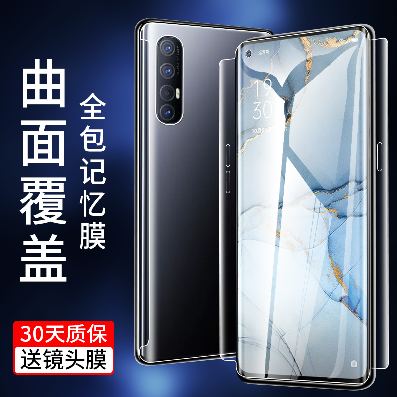opporeno3pro steel film reno3 fullscreen covering full-pack edge meta-gas version mobile phone curved screen Blu-ray oppo anti-fall lens anti-blue eye water gazing soft film anti-crash strip por