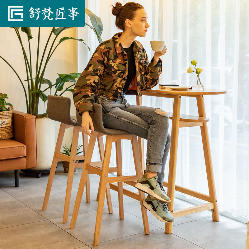Schuvan Smith Matter Backrest Solid Wood Bar Chair Nordic Bar Chair Bar Stool Modern Minimalist Home Front Desk High Footstool