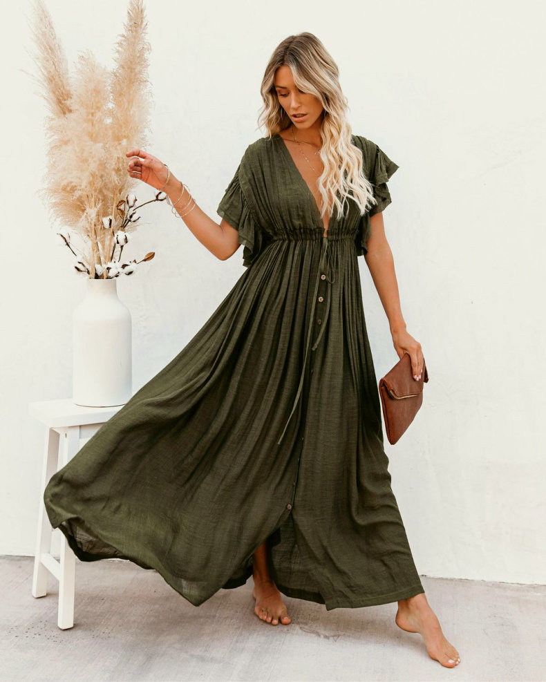 Army Green Bamboo Backless Dress Milk White Bamboo Backless Dress Rust Red Bamboo Backless Dress Black Bamboo Backless Dress