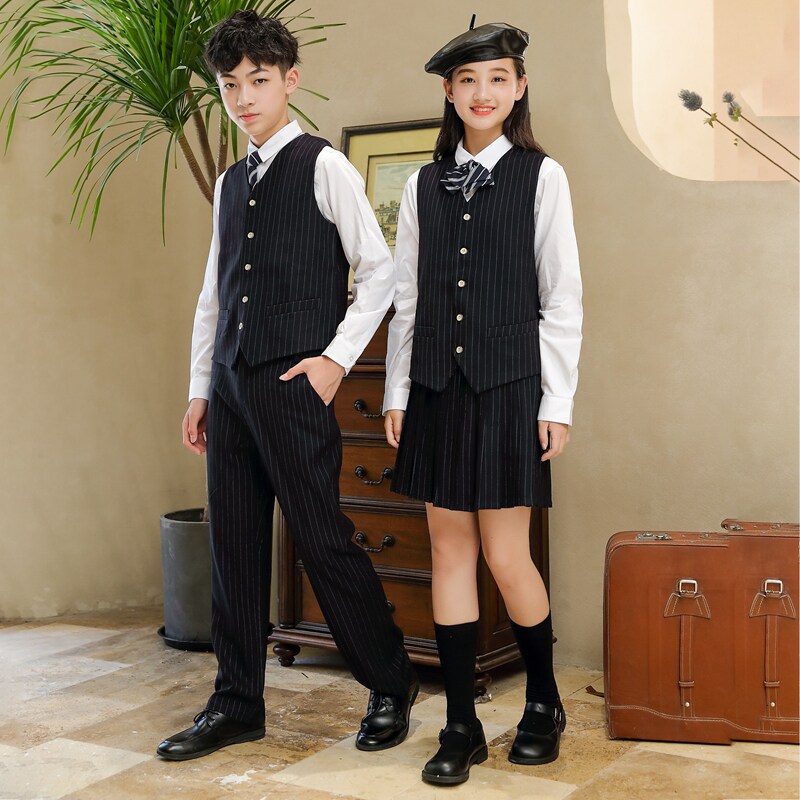 First grade spring and autumn kindergarten uniforms British school uniform suit four-piece set of primary and secondary school students suit class uniform work clothes