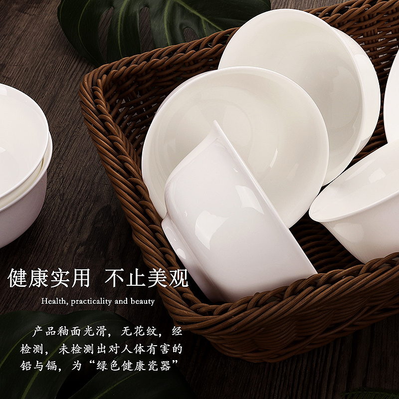 Bone china tableware bowls and dishes pure white household single product simple white ceramic combination bowls and plates free matching bowls and chopsticks set