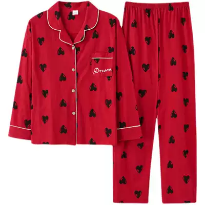 Cat man red pajamas women's spring and autumn cotton long sleeves cute this year Home clothes set autumn and winter models can be worn outside