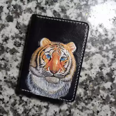 Handmade leather carved driver's license large capacity multi-card leather card bag male holster driving license two-in-one pet customization