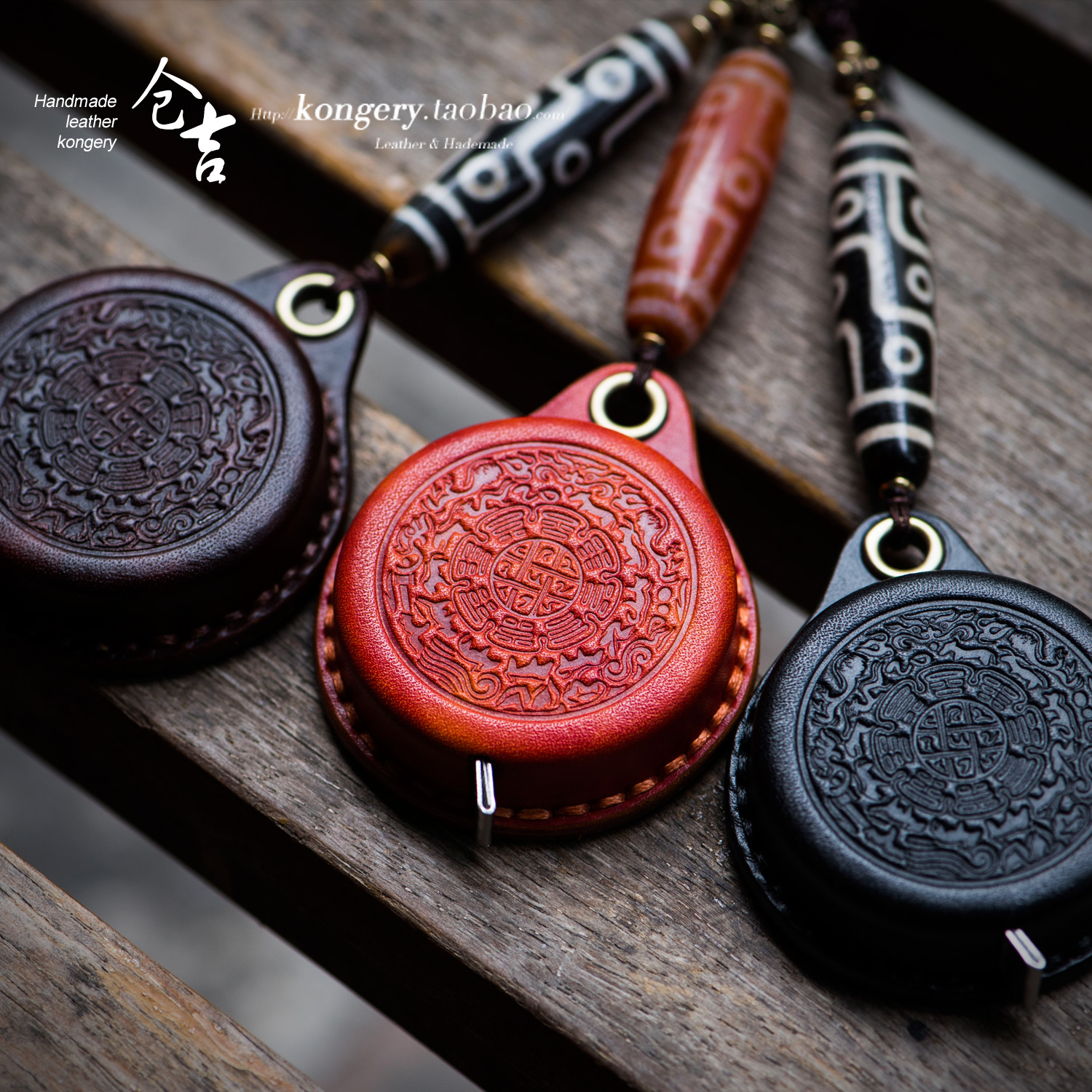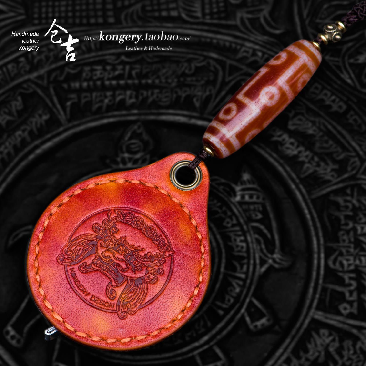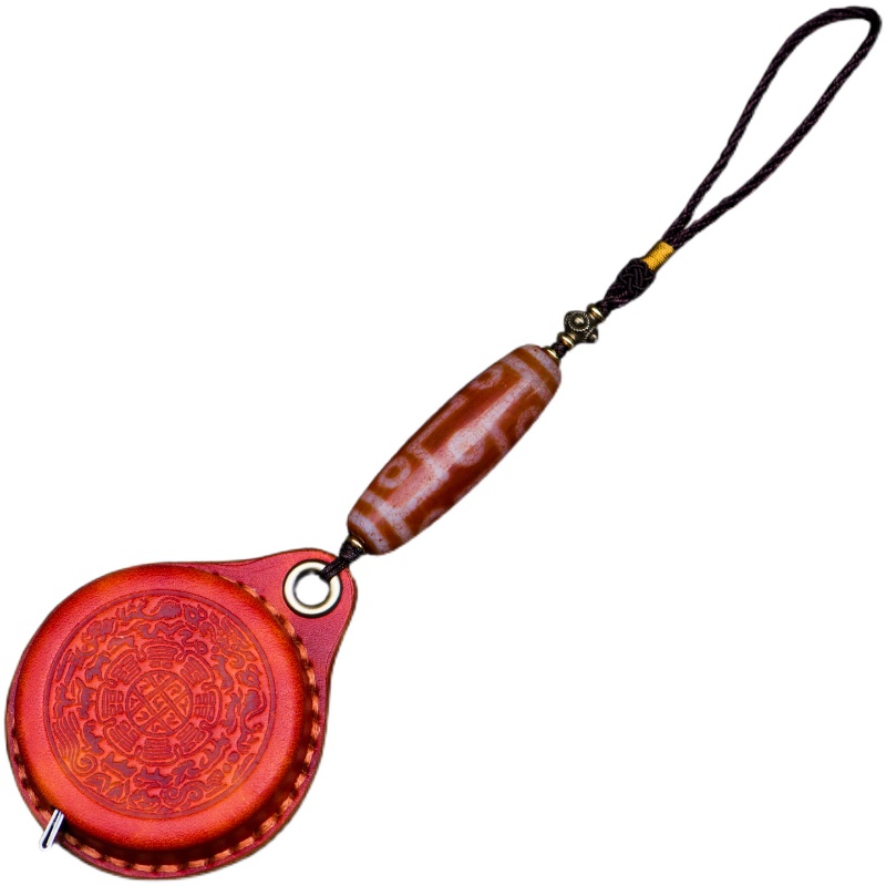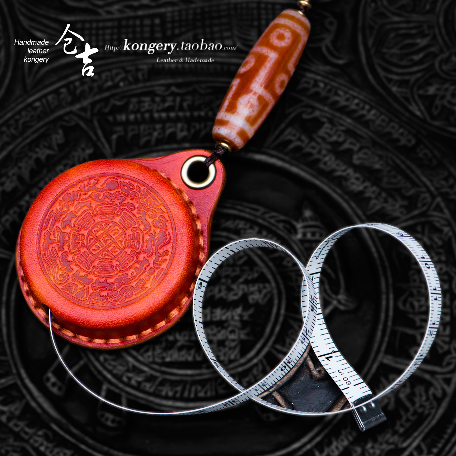 Bunggie handmade head layer of cow leather ruler to play the celestial bead agate pendant with a length of 1 5 m measuring tape pendant