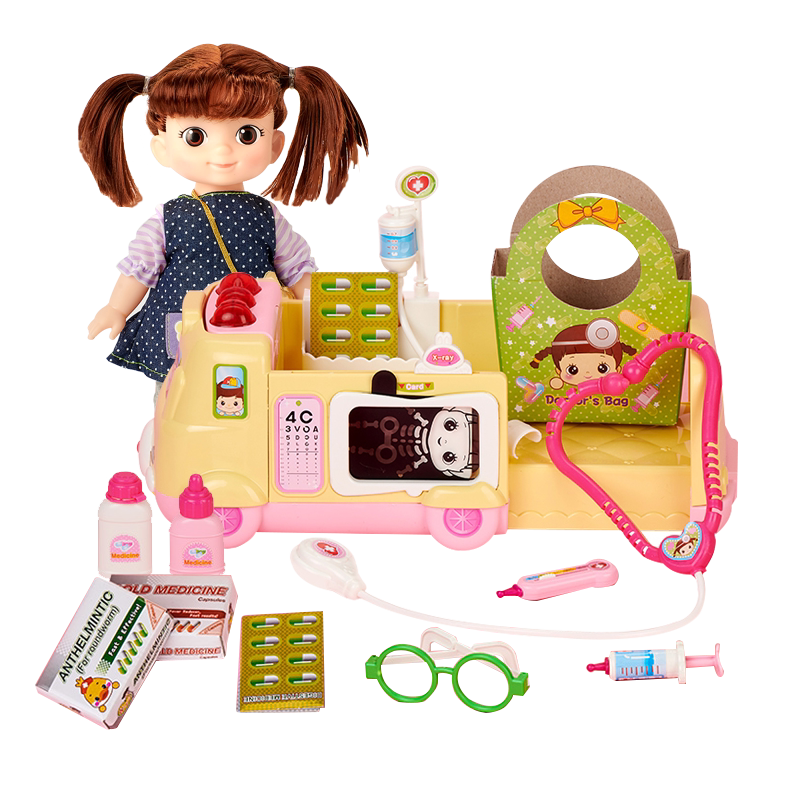 Little bean doll peace of mind ambulance little doctor toy nurse injection medical box woman pretending to be home wine simulation gift