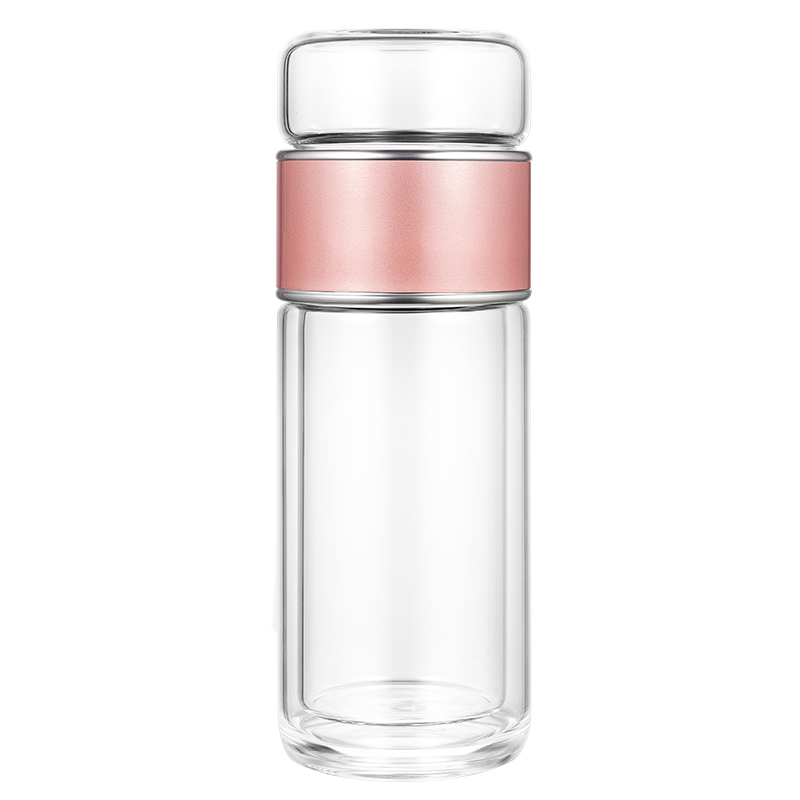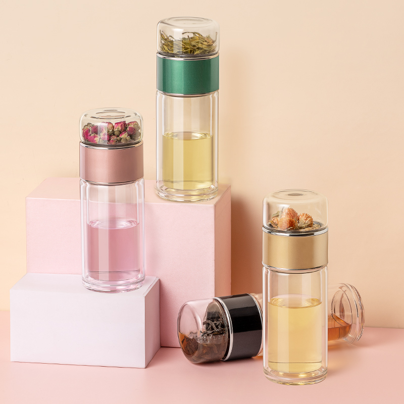 Double-layer glass water cup female portable cute tea separate tea cup solid color transparent cup student male net red