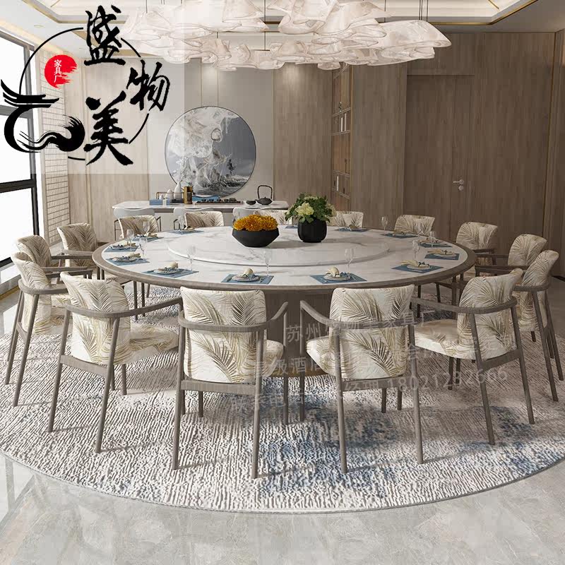 Hotel Electric Big Round Table Light Lavish Rocky Plate Table Marble Clubhouse Hotel Bag Invisible Hotpot 12 people 20