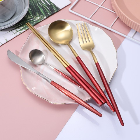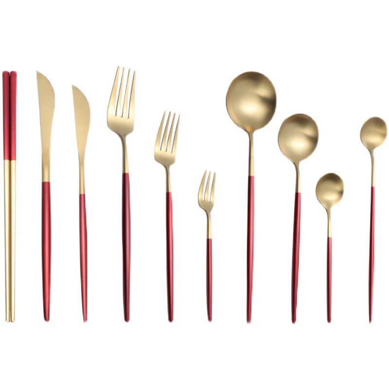 Red gold table spoon (matte) red silver table spoon (matte) red gold fork (matte) red silver fork (matte) red gold table knife (matte) red silver table knife (matte) red gold Coffee spoon (matte) red silver coffee