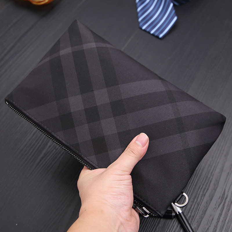 New men's plaid handbag canvas clutch ipad bag envelope bag Oxford cloth large capacity A4 file bag tide