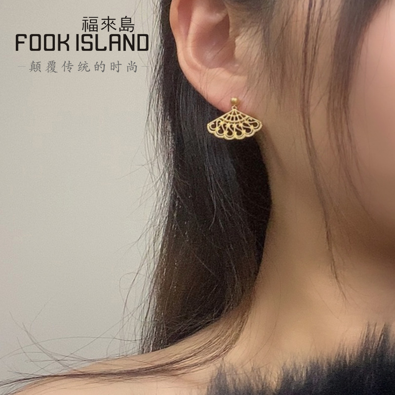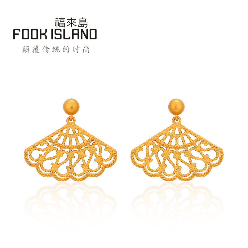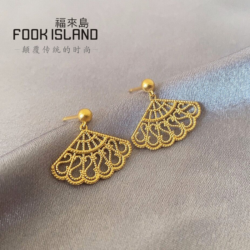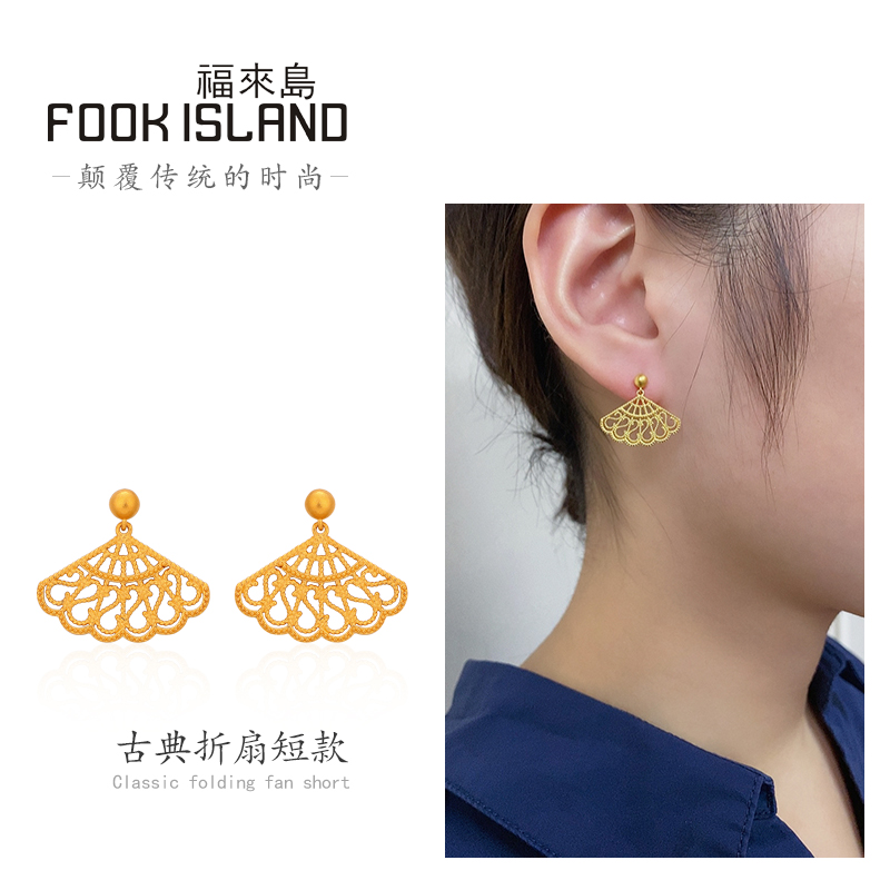 Fulai Island Gold Stud Earrings 999 Pure Gold Earrings Delicate Elegance Ancient Gold Classical Folding Fan Earrings Earrings Female