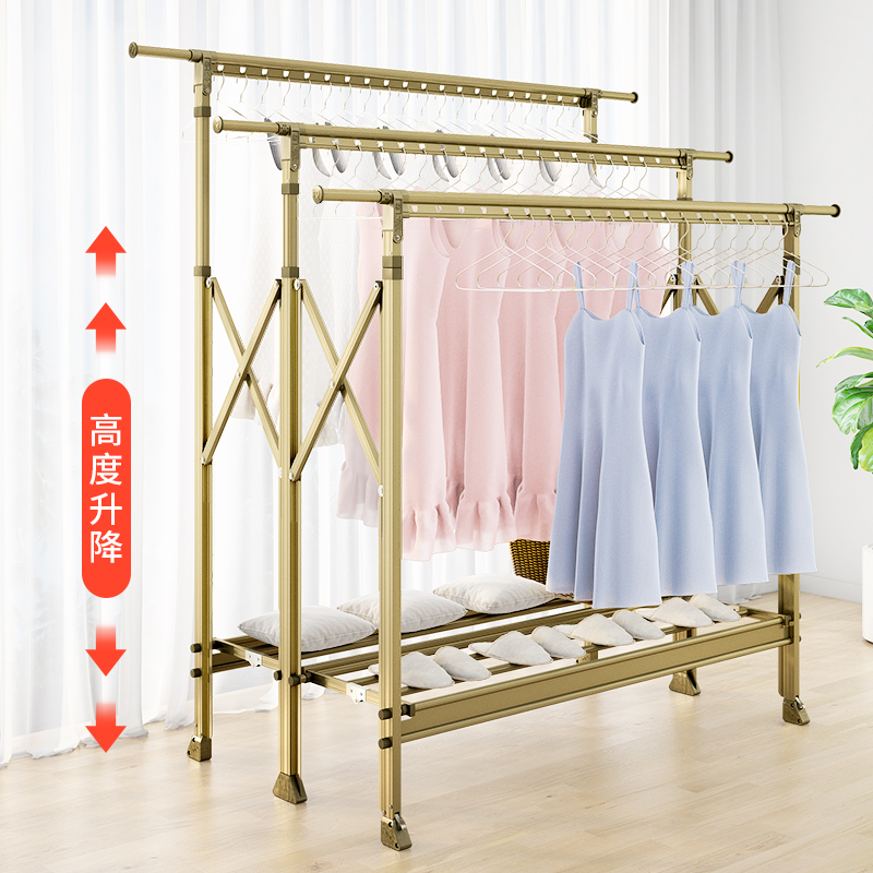 Clothing rack balcony floor folding room double pole sun-type sub-frame cooler household scaling mobile drying rack