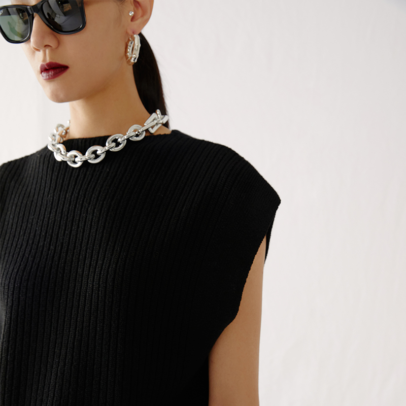 MADEINAM 2021 new pure cotton 2 20 yarns long four flat webbing metal ring buckle knitted sweater women