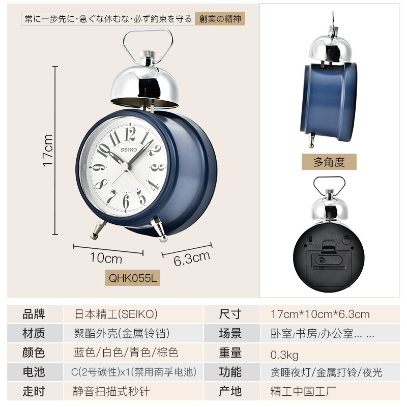SEIKO Silent sweep second snooze night light night light Japanese retro metal mechanical ringing alarm clock