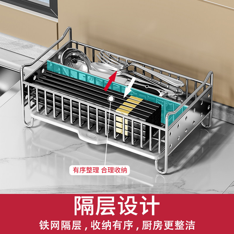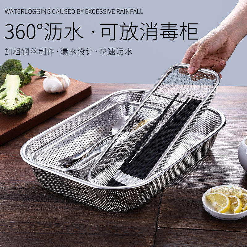 304 stainless steel kitchen chopsticks rack disinfection cabinet multi-function spoon shovel storage rack chopsticks cage basket drain box