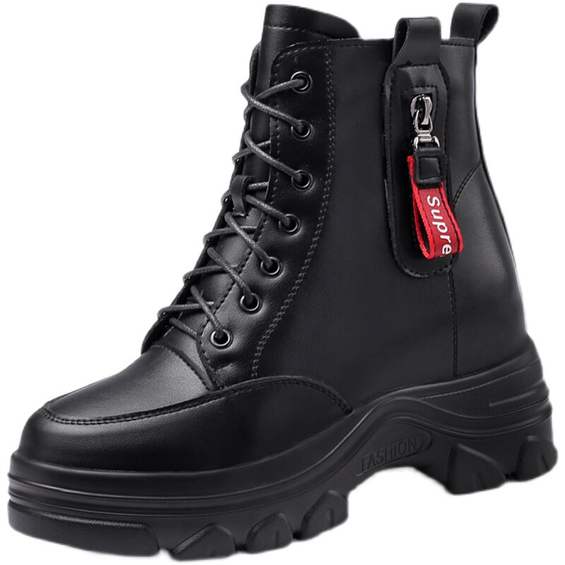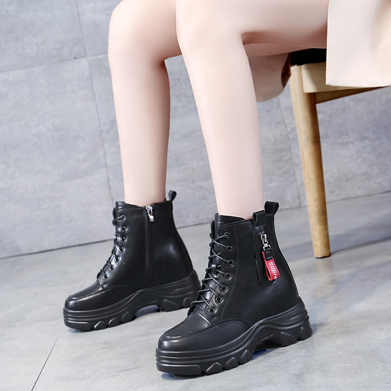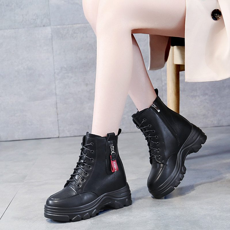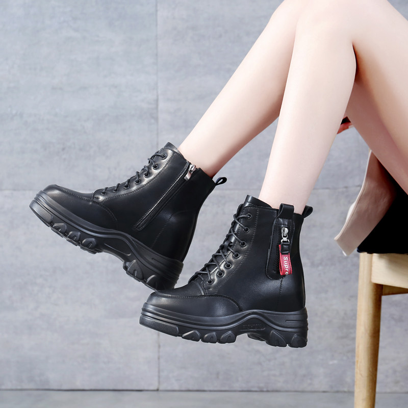 Real leather inner heightening Martin boots woman 2023 new autumn breathable single boot thick bottom side zipped 100 lapped small sub short boot-Taobao