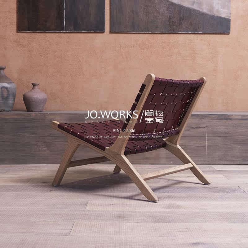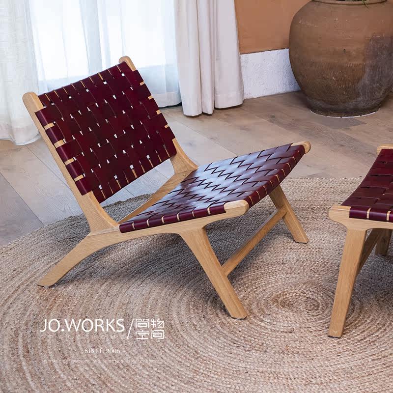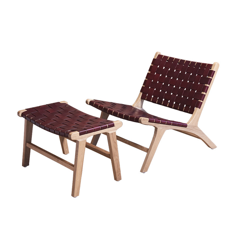 Nordic Buffalo Leather Choreography Designer Custom Single Leisure Chair Balcony Sofa Chair Ins Wind Dermis Solid Wood Reclining Chair