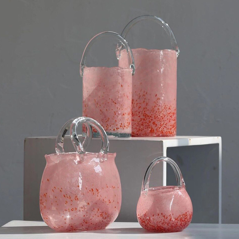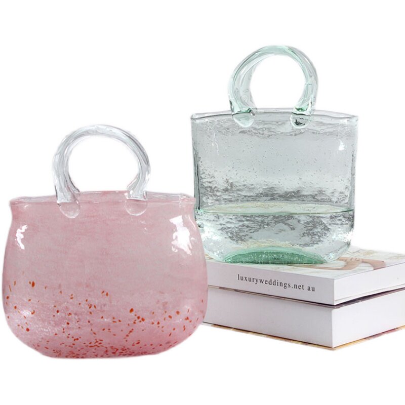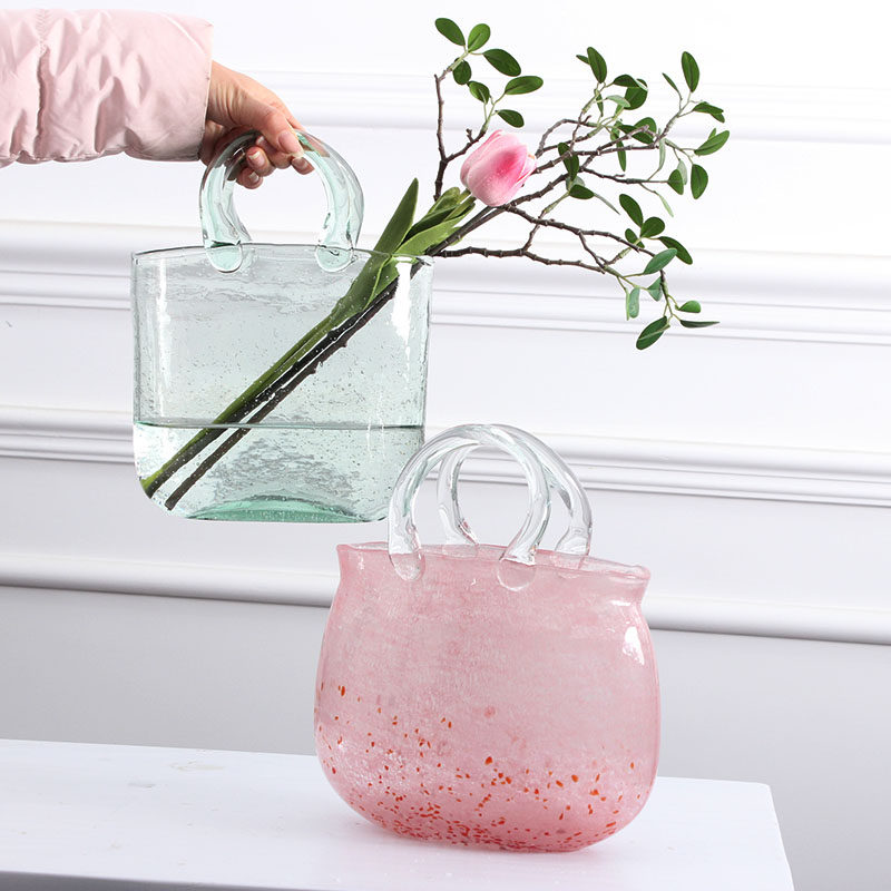 Home hydroponic basket bag vase ornaments transparent flower arrangement wind living room handbag glass vase hydroponic