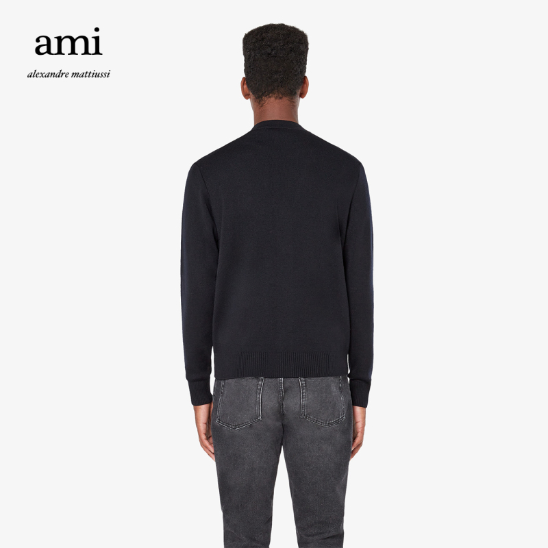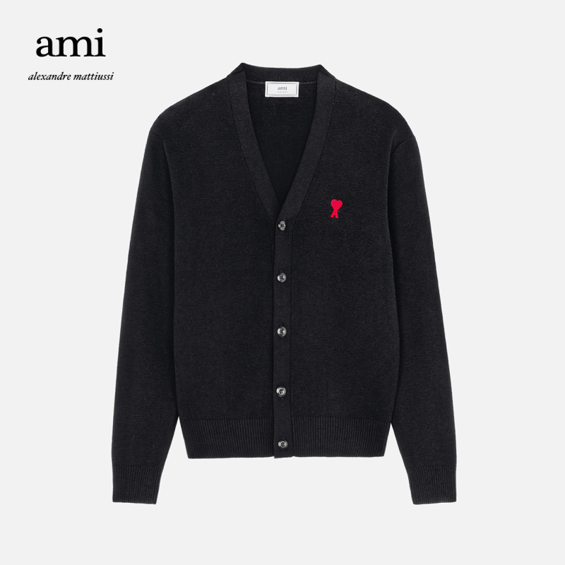 (Gifts for Valentine's Day) AMI Men's classic Loving Money Wool Black Casual Cardiovert Sweater Jacket