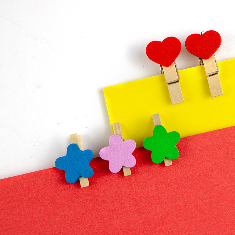 Colorful wooden clip wall decoration hemp rope photo postcard clip large trumpet love cute handmade diy material package small clip kindergarten white hard cardboard color handmade hemp rope