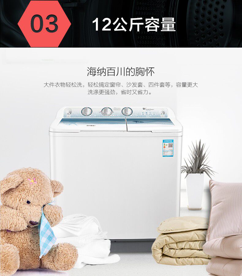 Little Swan double-slot semi-automatic washing machine 12 kg large-capacity household double-cylinder hotel commercial TP120-S998