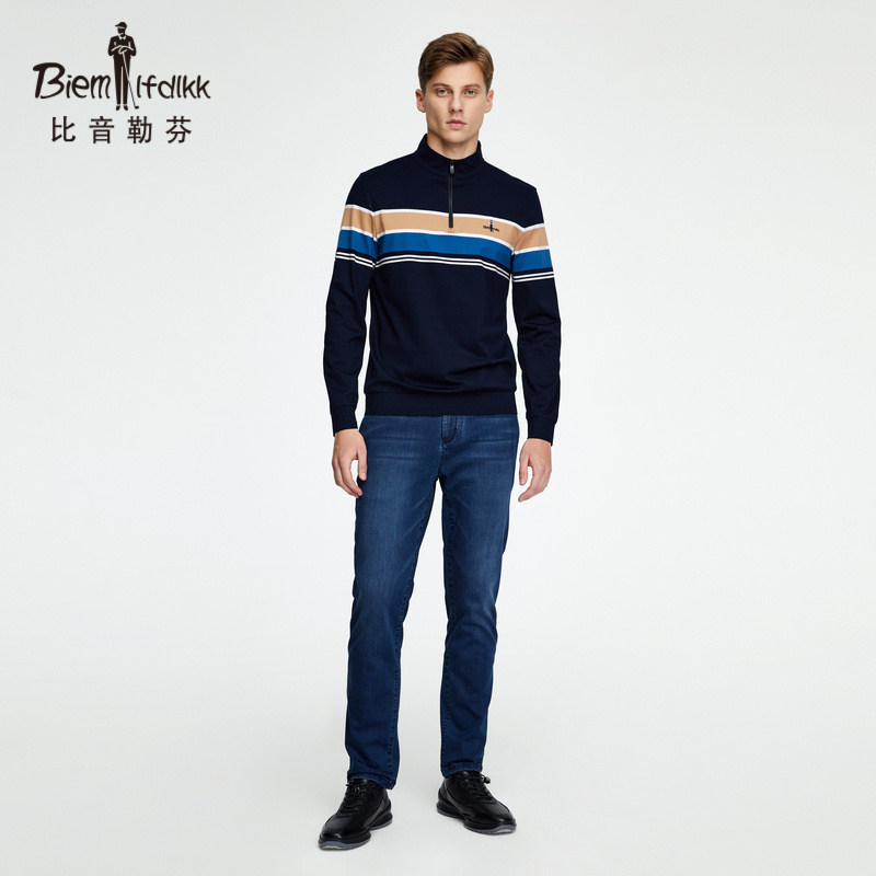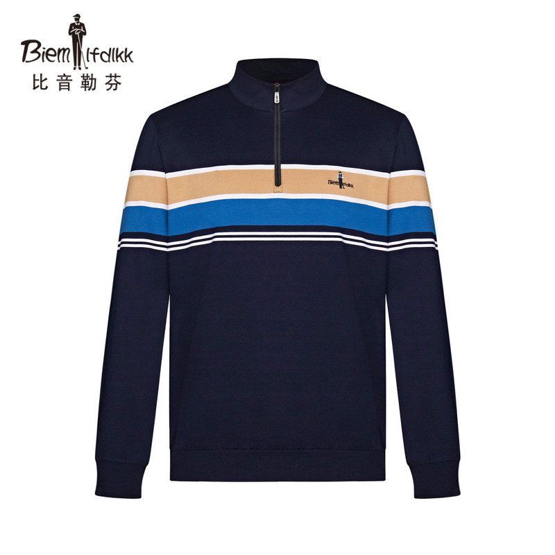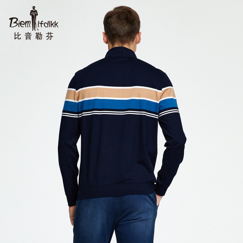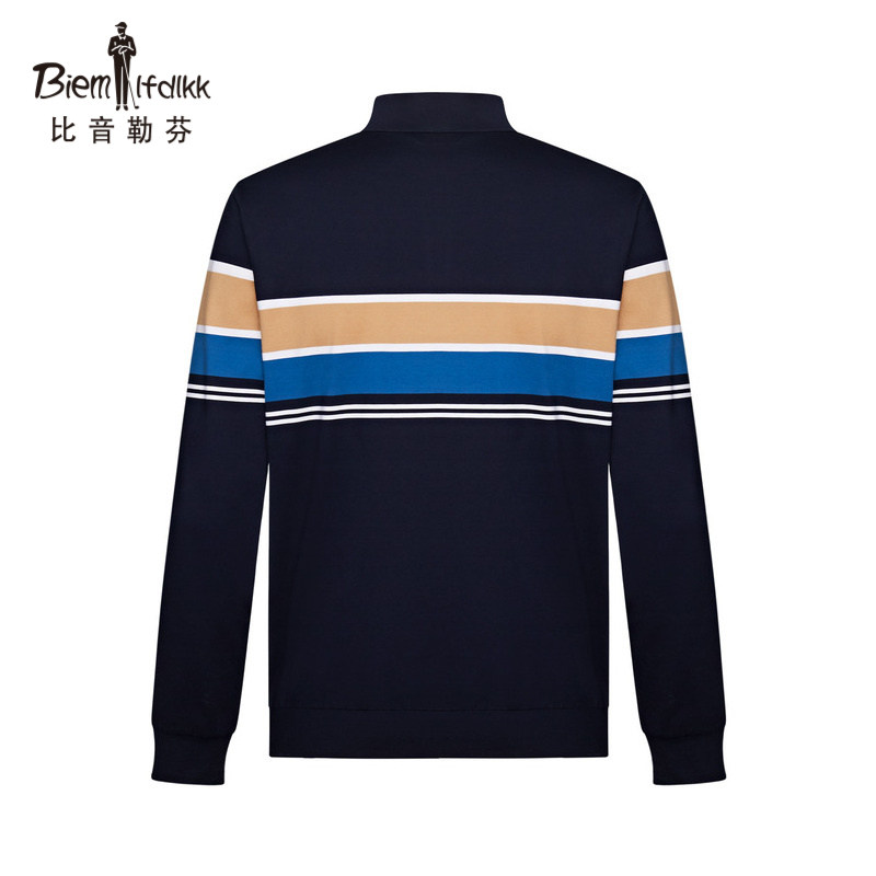 Bitone Le Finn standout collar Striped Striped elastic cotton long sleeve T-shirt Men's spring new casual breathable blouses