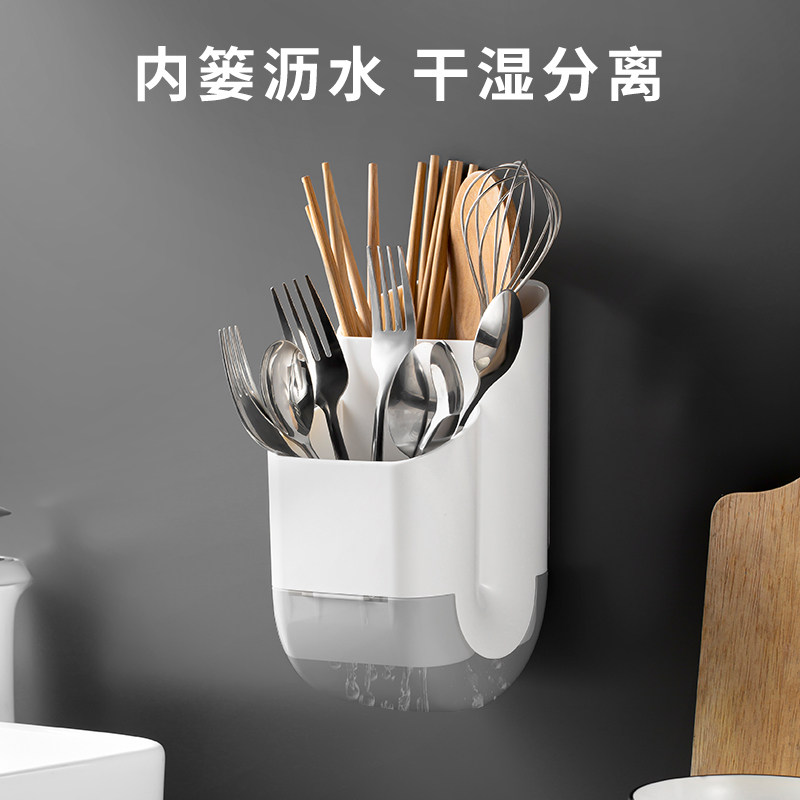 Kitchen draining chopsticks tube chopsticks rack cage chopsticks tube tableware rack free punching wall hanging household spoon storage box