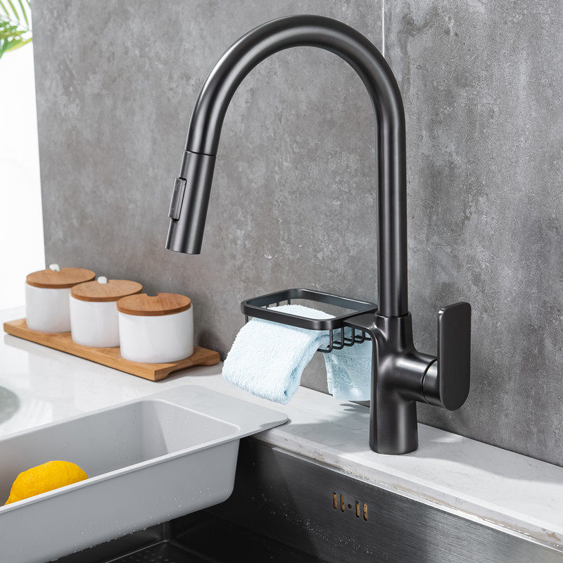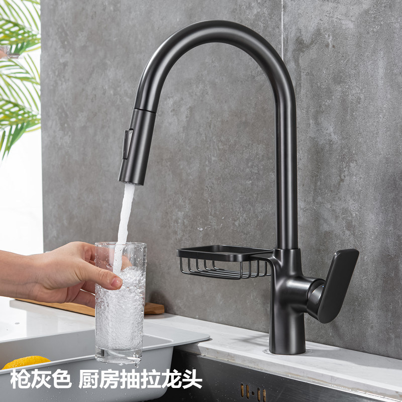German contemporary bathroom high-end black gun gray all-copper kitchen pull-out household rotary faucet washbasin sink
