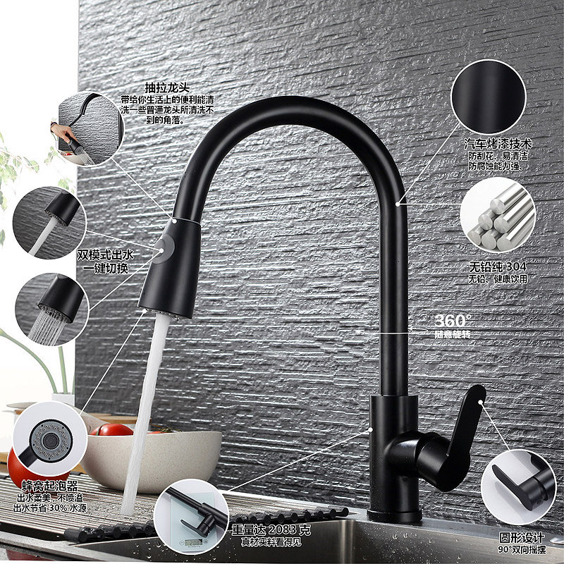 German contemporary high-end 304 stainless steel black kitchen cramp swivel tap hot and cold wash dishes washing dishes sink