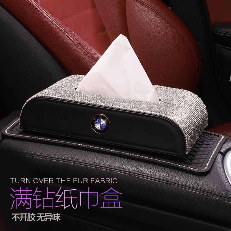 BMW (diamond-encrusted tissue box + non-slip mat)