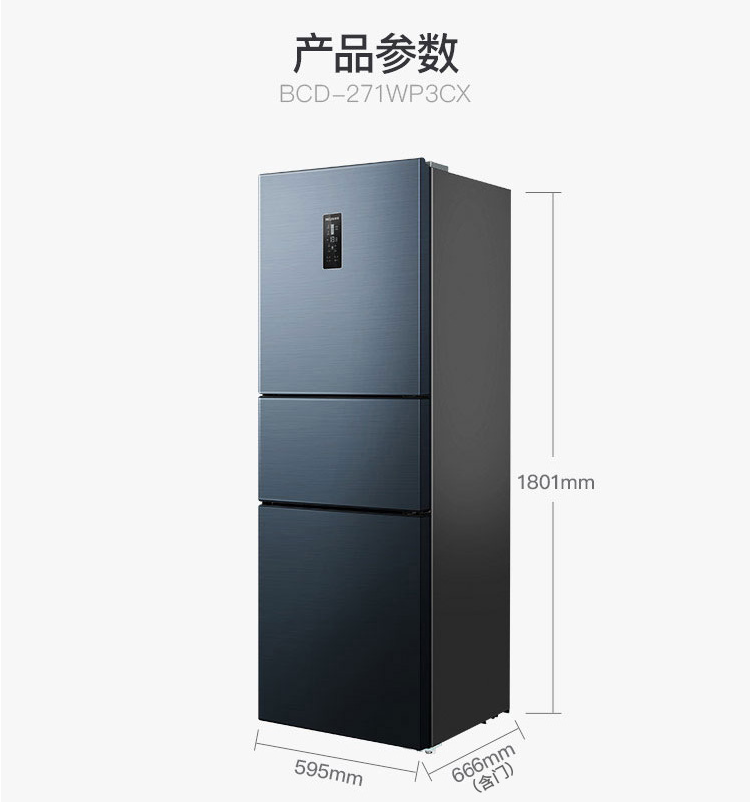MeiLing Meiling BCD-271WUP3B272 three-door air-cooled frost-free frequency conversion household mute three refrigerators