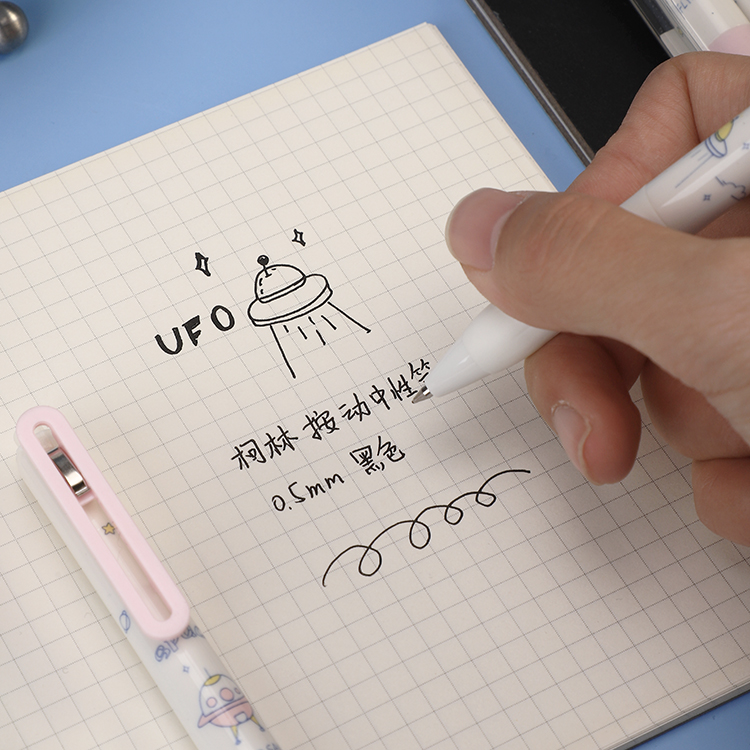Colin UFO alien series simple press gel pen signature pen water-based pen black 0 5mm students with boys cute creative black pen pressing high-value ins Japanese sailing dream