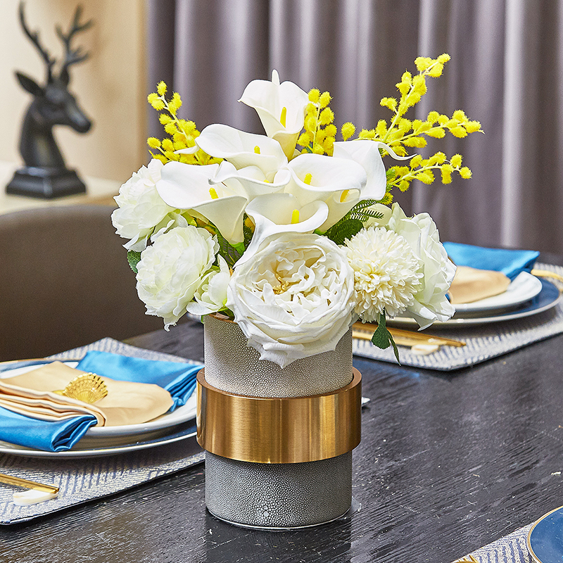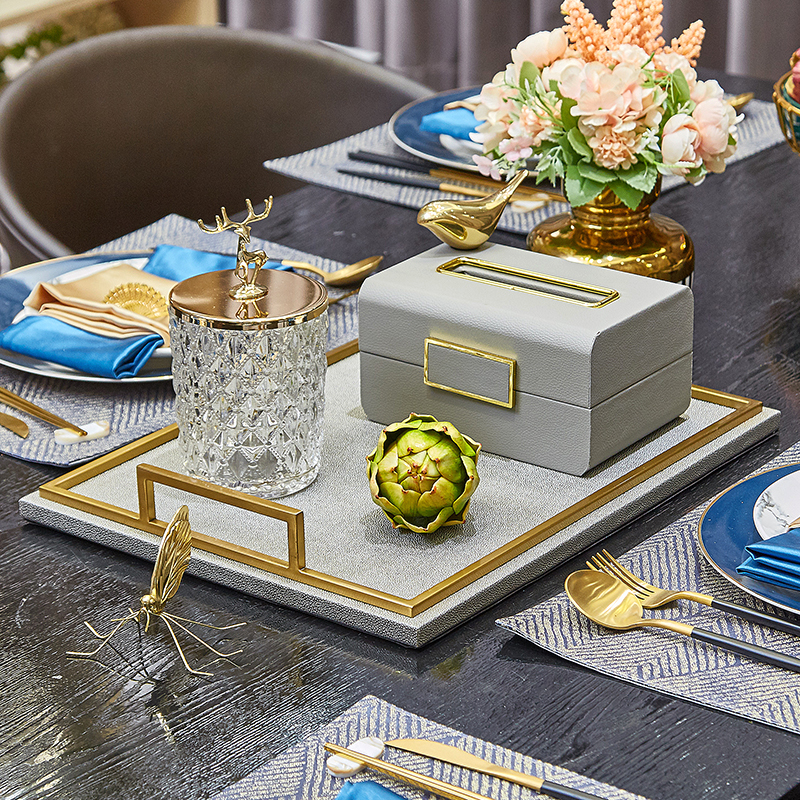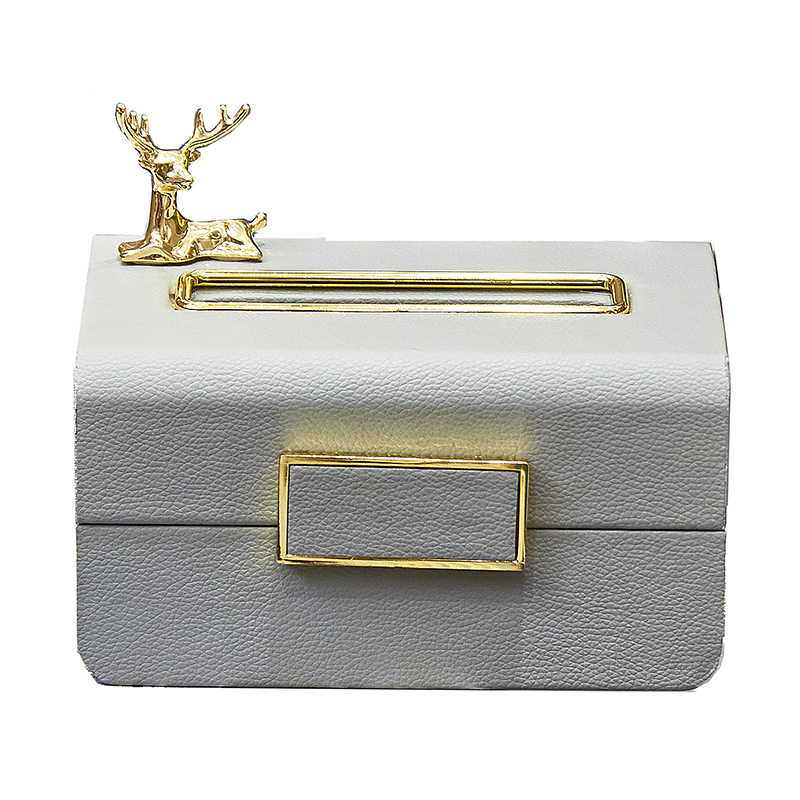 Square buckle tissue box gray tray (excluding interior) leather vase (excluding flowers) station deer can one large and one small square buckle tissue box golden deer