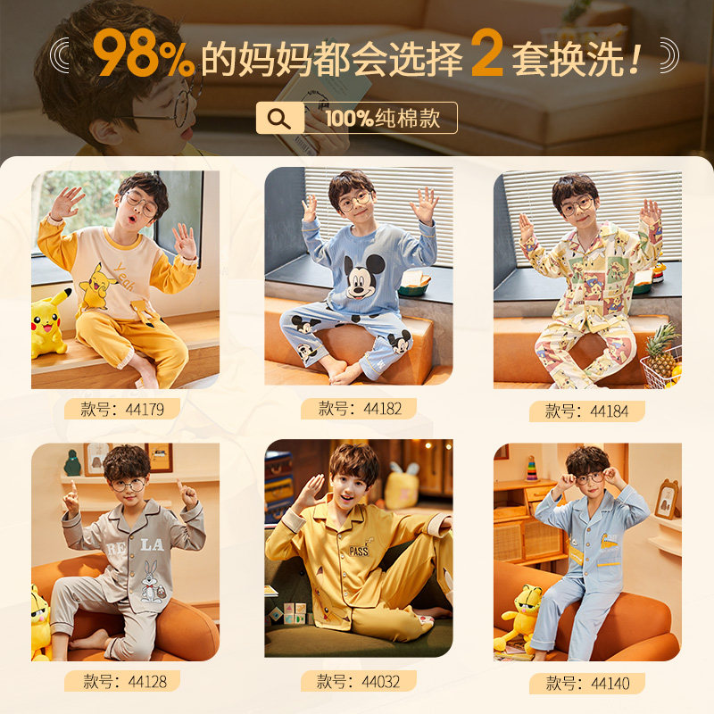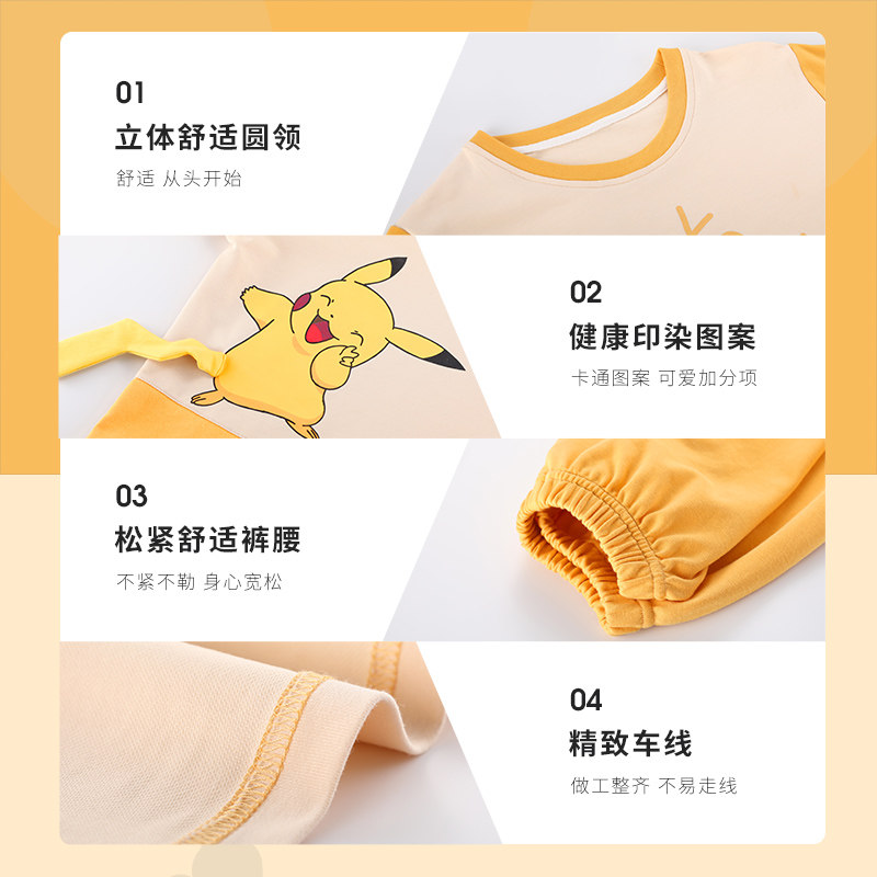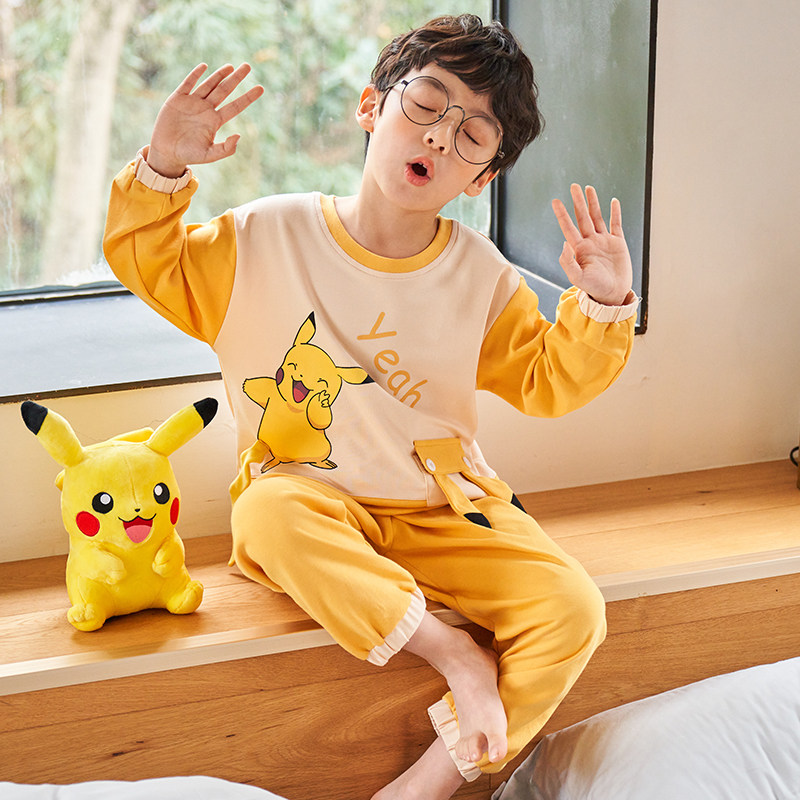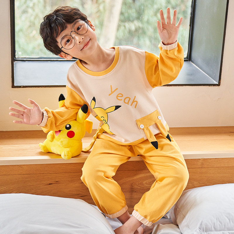 Pikachu Boy pajamas spring and autumn long-sleeved cotton thin section of children's little boy cartoon baby home clothes set
