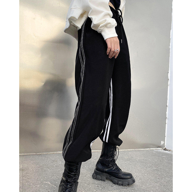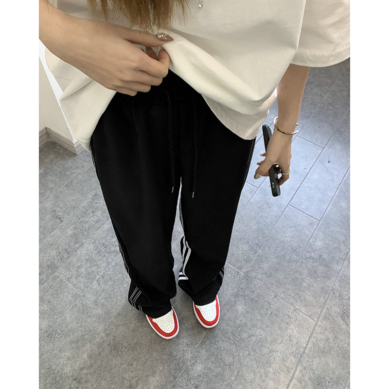 Race Small Sloth Striped Casual Sports Pants Women Spring Loose Black Straight Drum Pants 100 Hitch High Street Ins Tide