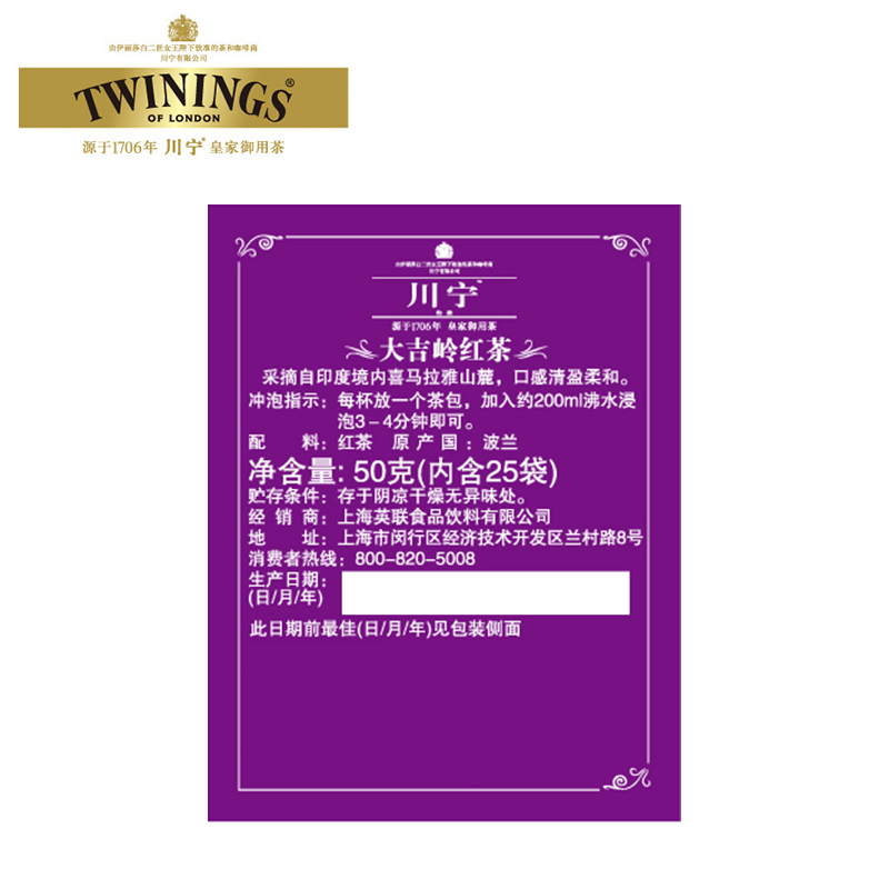 Twinings British Downing Darjeeling Black Tea bag English Black Tea bag tea leaves Sri Lanka Ceylon Black Tea