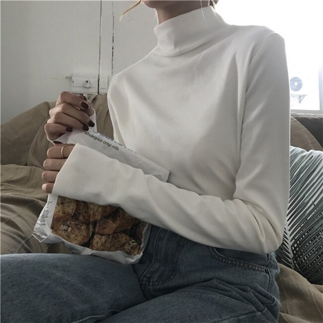 Meet home WeChat big size custom pure color half-height collar bottom-shirt Women's autumn Winter Korean version of the new big size Size Fat Mm