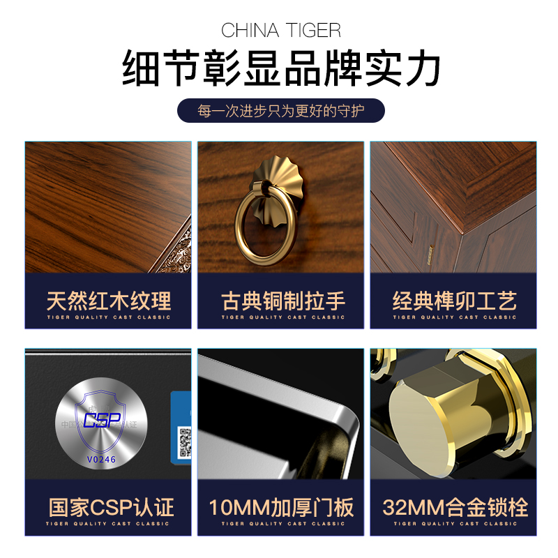 Tiger brand new Chinese style solid wood safe bedside table invisible 66cm high hidden built-in official safe home anti-theft all-steel small large-capacity smart bedroom bedside safe box