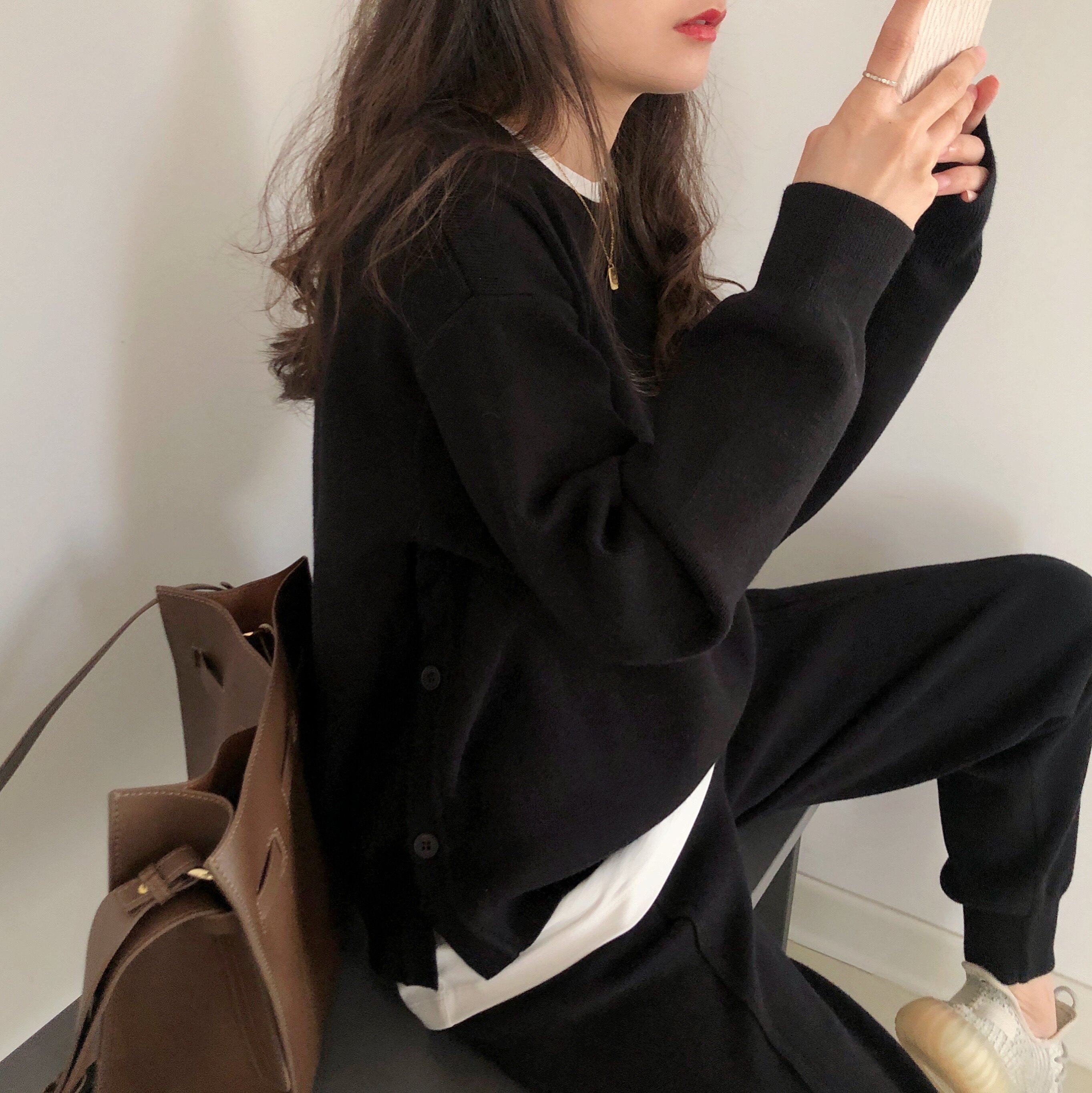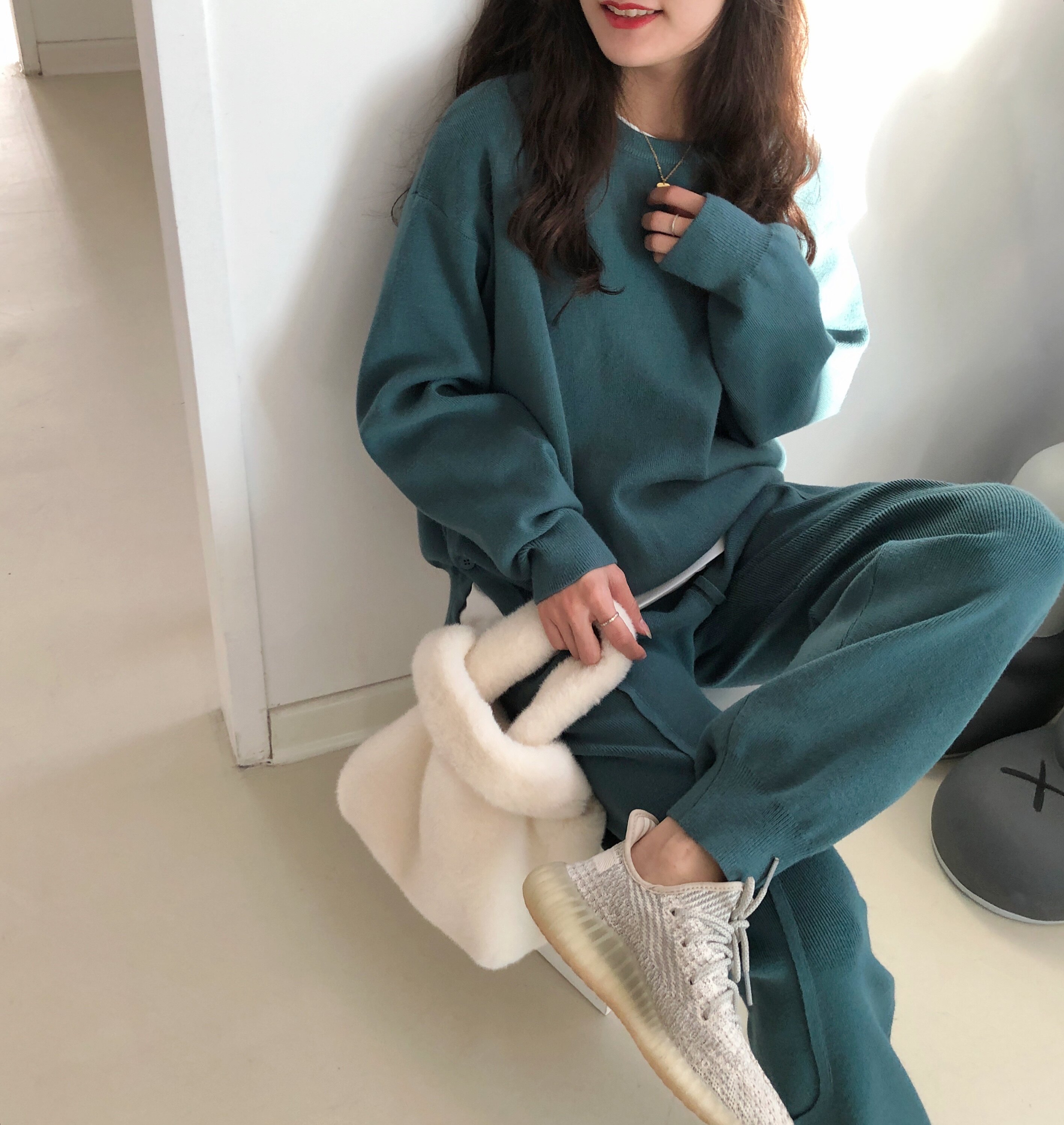 Casual Sports Fashion Open Fork Knit Suit Women 2021 New Autumn And Winter Korean Edition Sloth Two Sets Little Subs