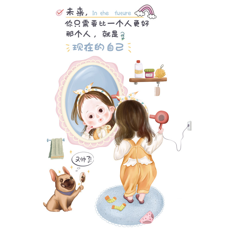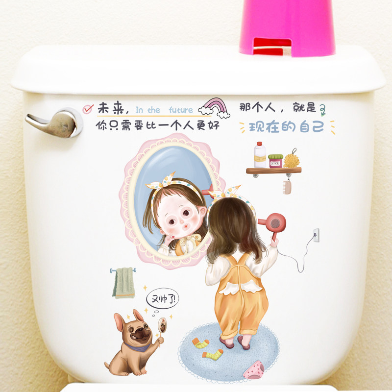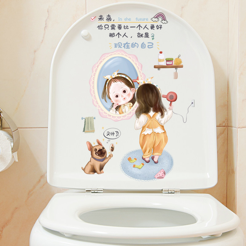 Removable wall sticker toilet sticker toilet lid tank Inspiring Fun Literal Girl Dorm Room Hostel Arrangement Tile