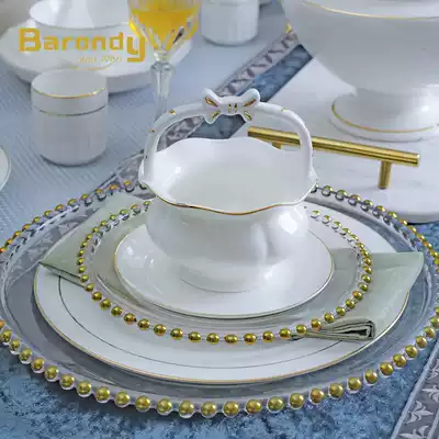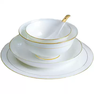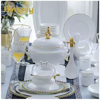 Barondy Jingdezhen light luxury bone porcelain bowl Bowl plate spoon chopsticks household gold inlaid jade porcelain bowl set set